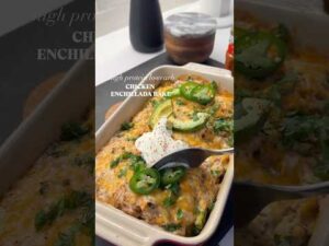 HIGH PROTEIN CHICKEN ENCHILADA BAKE This is an easy, high-protein meal you can pop in the oven for quick, satisfying