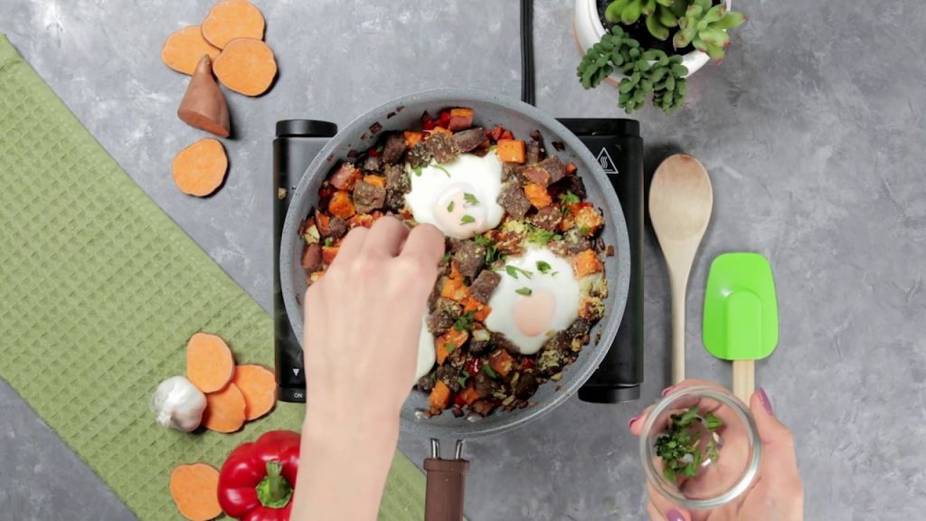 We usually stick to the sweeter side of recipes on Questify, so we wanted to toss that idea out the window and gift you with this savory Corned Beef Hash! You’re probably asking, but there’s plenty of protein in Corned Beef Hash already! Sure, but does regular Corned Beef Hash have Quest Ranch Tortilla Style Protein Chips? I didn’t think so. This super-simple recipe is easy to make and even easier to enjoy. Take a look at the full recipe below!